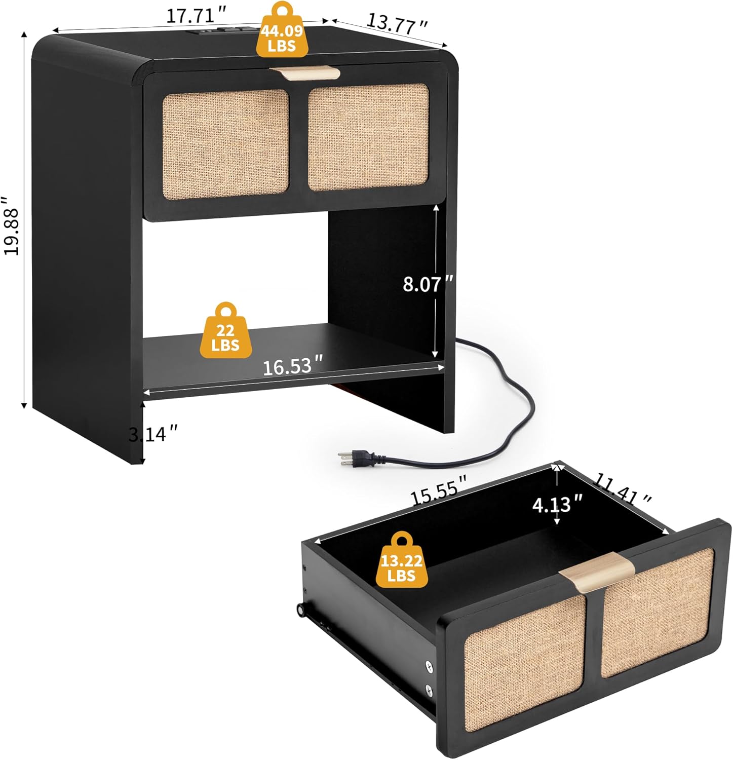 - Color : Black–linen Drawer Front