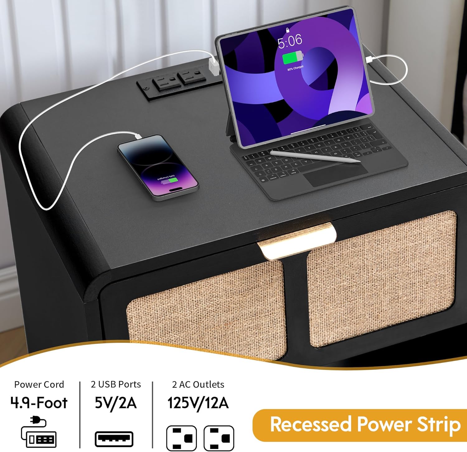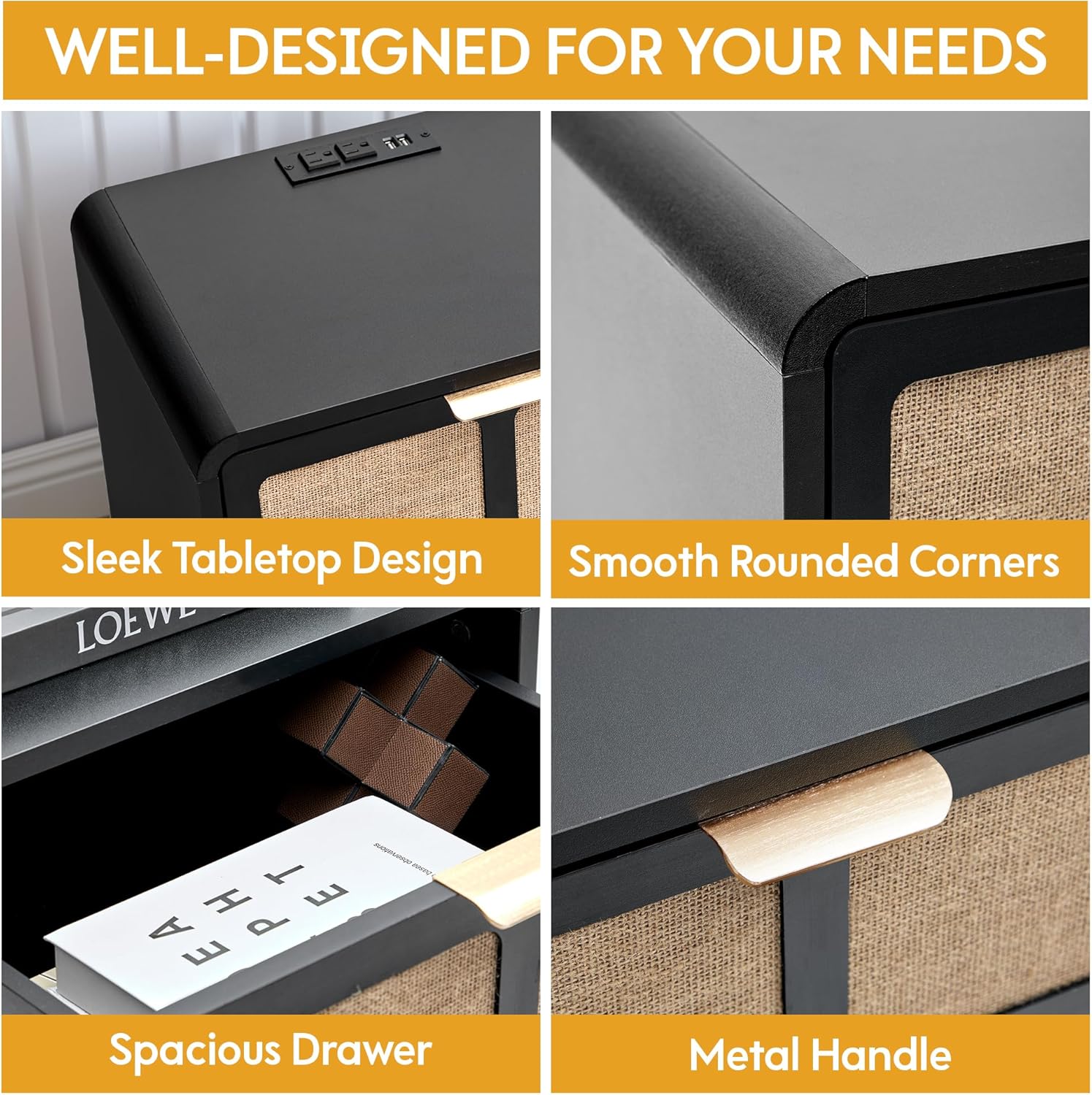 - 【Convenient Charging Station】Equipped with USB ports and power outlets, this bedside table makes device charging simple and organized—ideal for modern bedrooms and shared spaces like dorms.