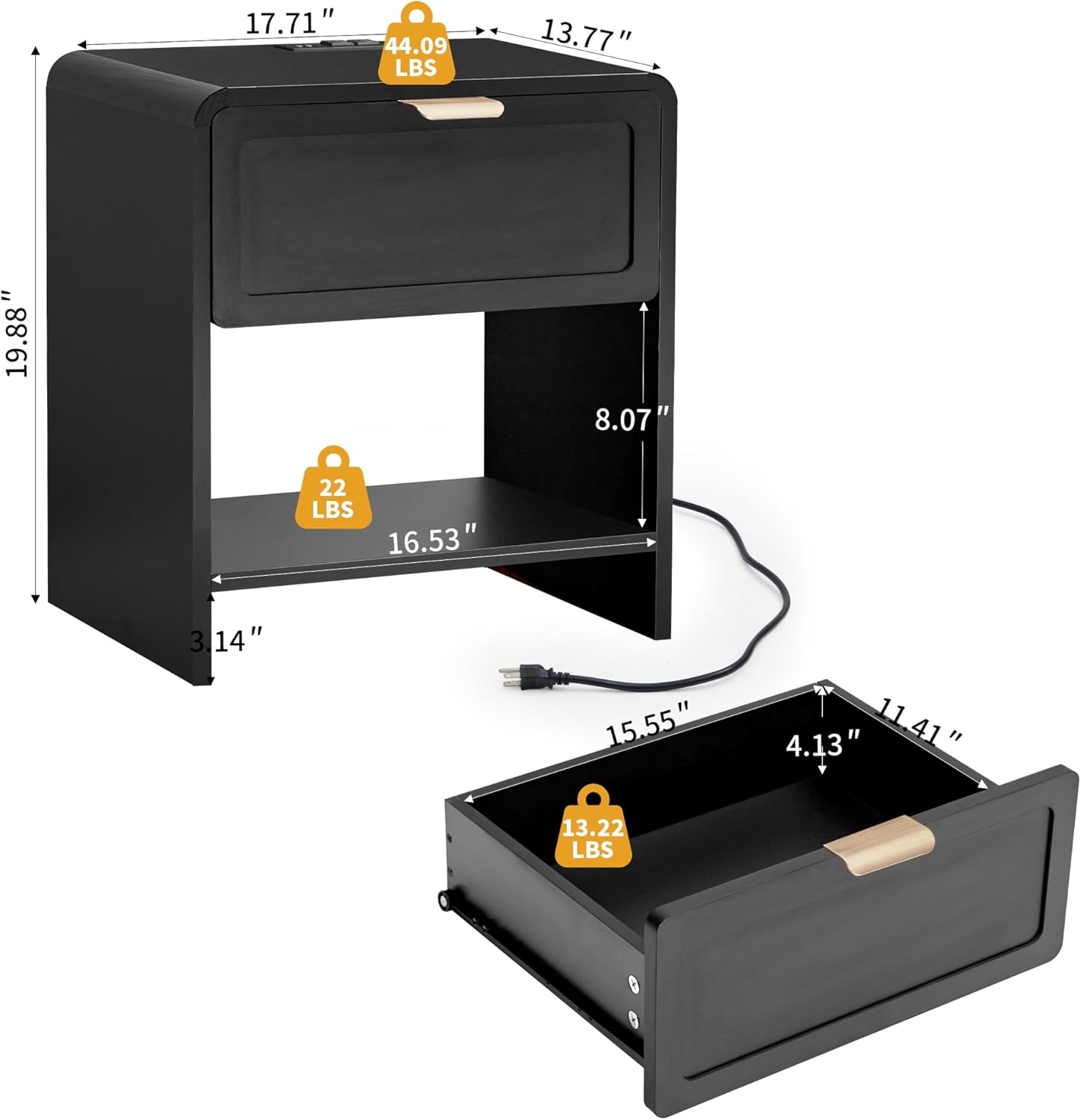 - 【Durable Structure with Stable Base】Built from sturdy wood and supported by reinforced metal legs, this nightstand provides a stable base and holds up to 50 lbs—designed for everyday functionality and durability.