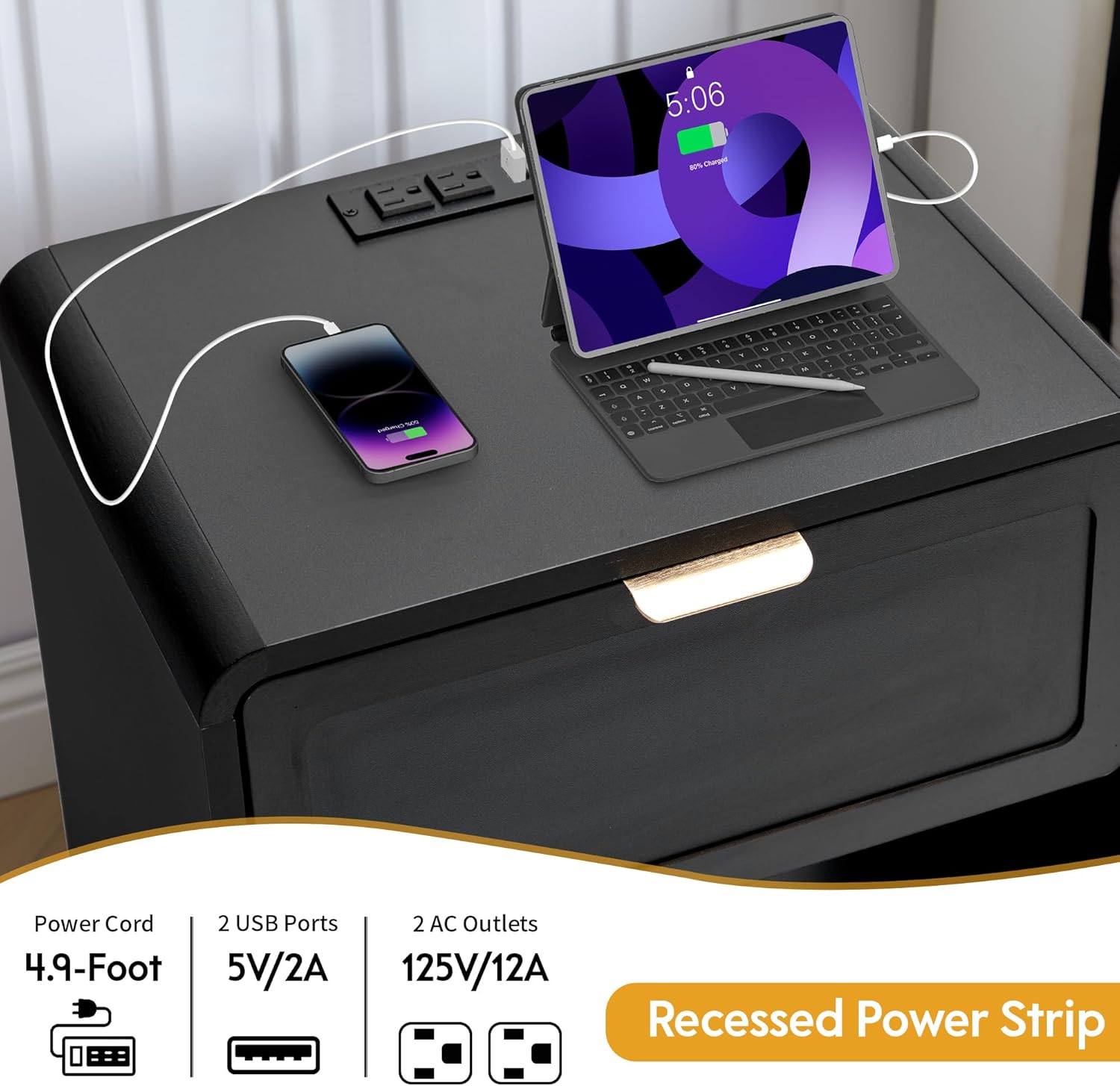 - 【Integrated Charging Station】Includes built-in USB ports and outlets, allowing you to charge devices conveniently while keeping cords hidden. Ideal for tech-savvy lifestyles in modern homes or dorms.