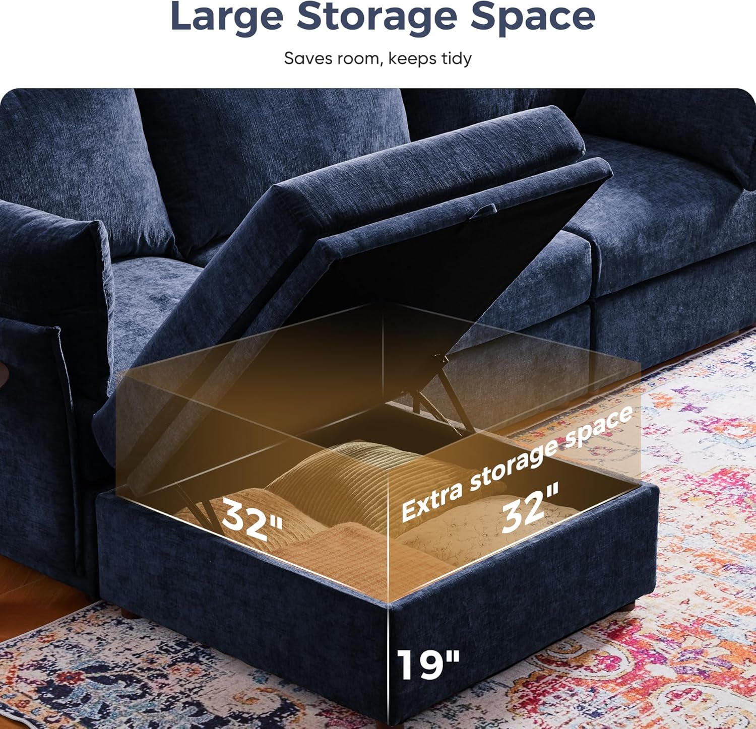 - đź’ˇ Stylish and Spacious Sectional Sofa - A blend of modern elegance and comfort, this blue sofa is ideal for contemporary interiors. Customize seating and shape by adding or removing modules to fit your needs. It's perfect for your living room, family room, bedroom, or office. Overall size: 198.6" W Ă— 100.5" D Ă— 36" H, seat width: 32", seat depth: 24.5".