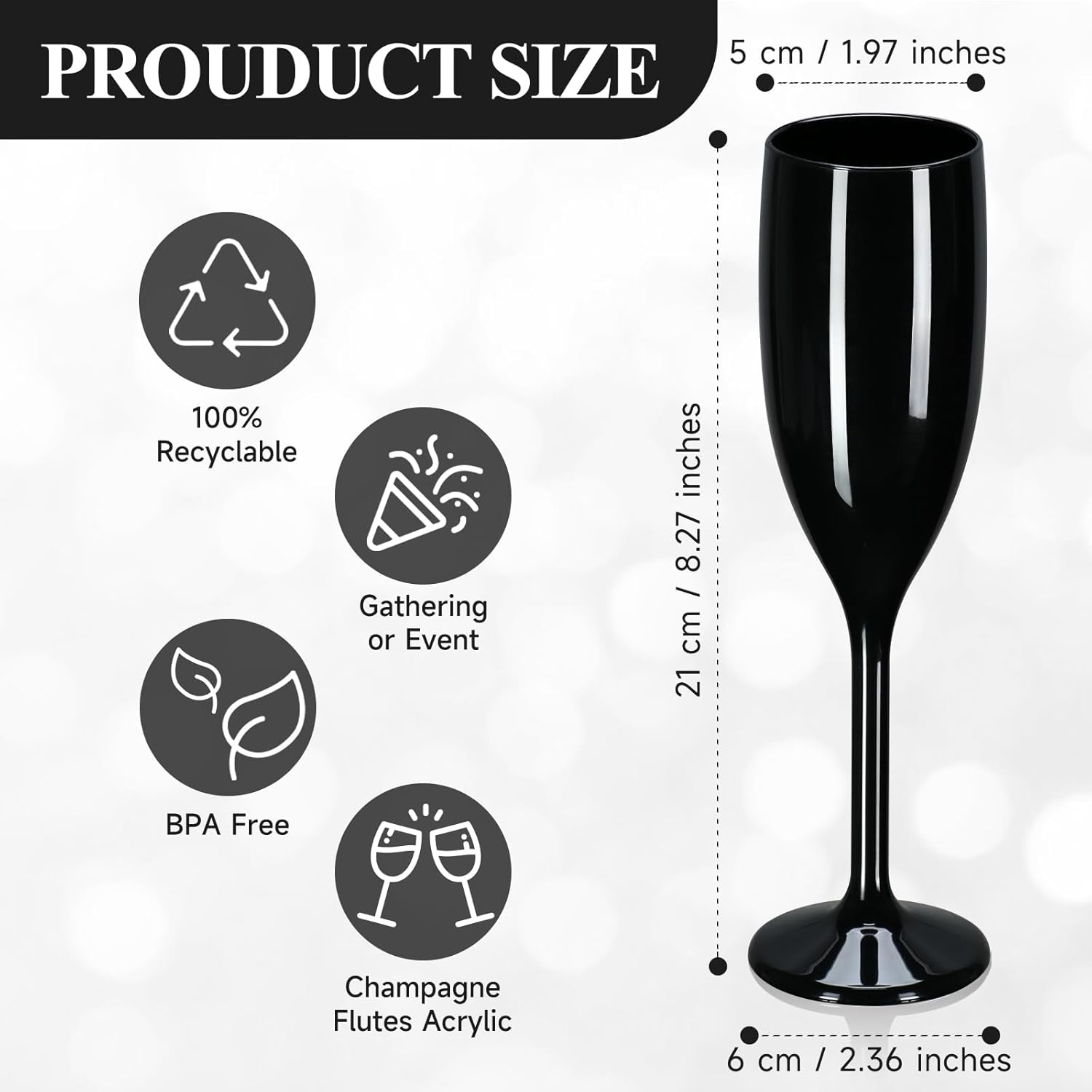 XUWAIDSGN Acrylic Champagne Flutes Toasting Glasses Unbreakable Mimosa Bar Reusable Wine Glasses Vintage Champagne Flutes Stemmed Drinking Cups 5.4 OZ for Christmas Birthday (100, Black)