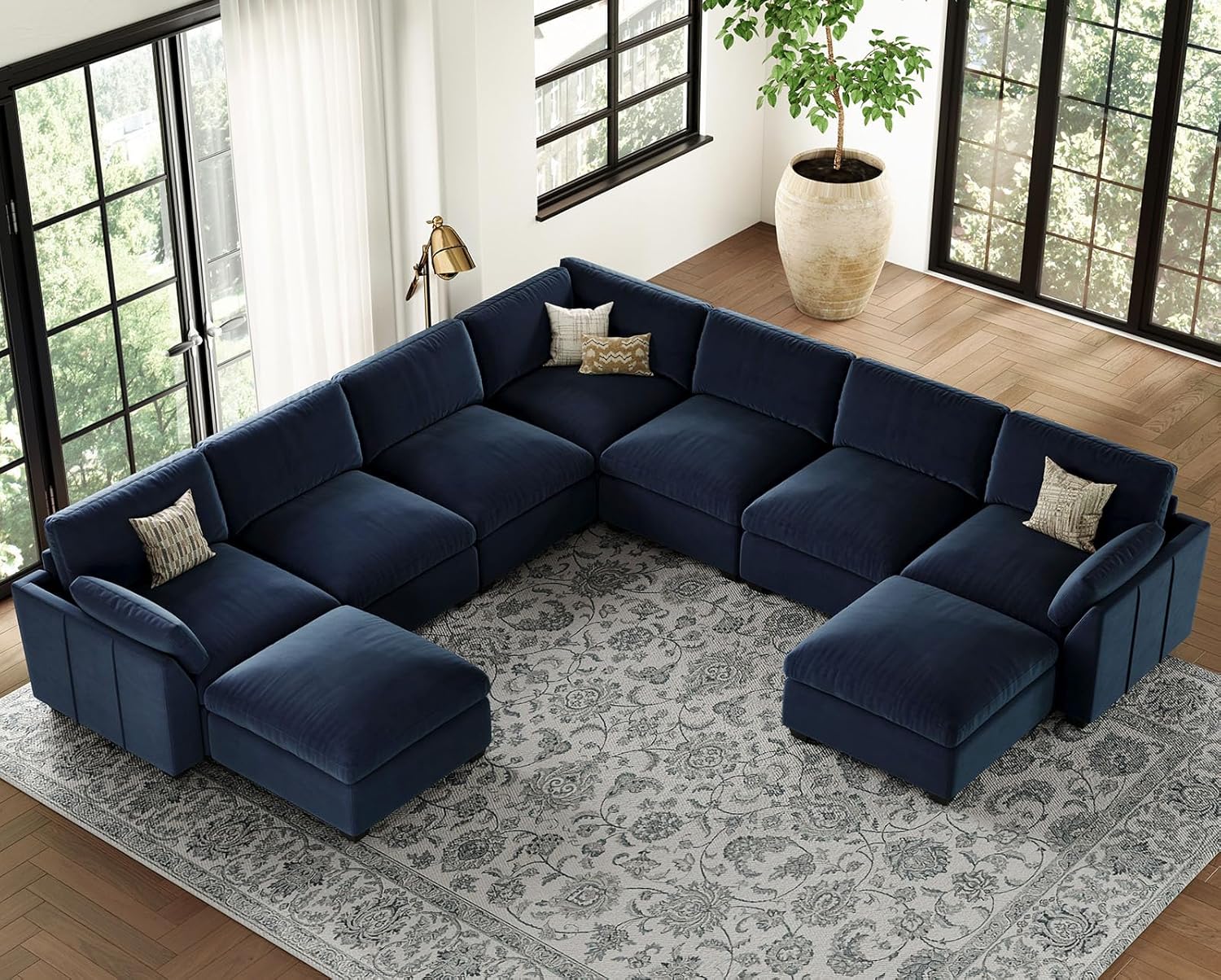 Belffin Oversized Sectional Couch with Movable Ottoman,Modern 137.8" 9-Seater Modular Sectional Sofa,Convertible Velvet U Shaped Sectional Couches for Living Room,Blue