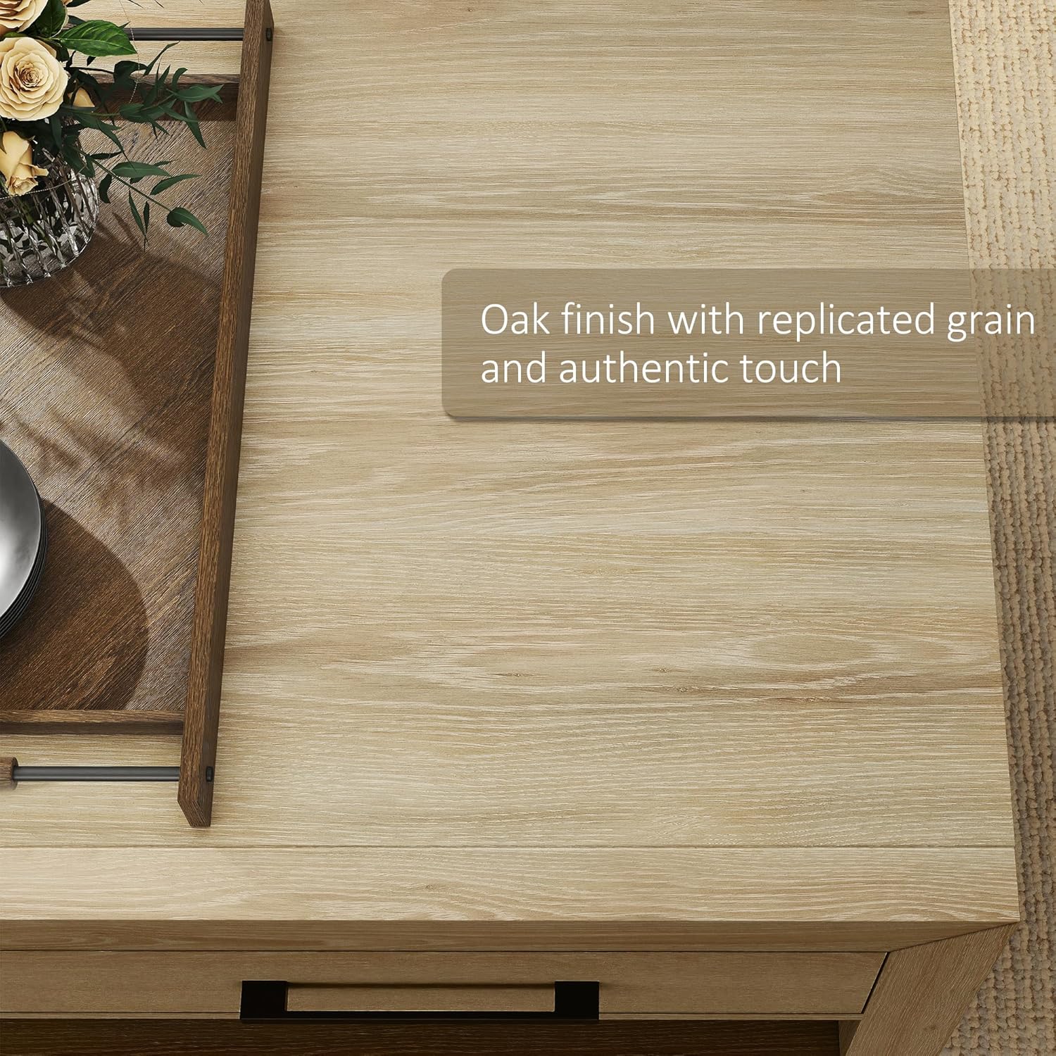 - Ample Storage Space These large coffee tables come with 4 high-quality drawers. Each drawer has heavy-duty ball-bearing side glides (for quiet use) and metal bar pulls with a blackened steel finish. Plus, the open panels let you place items freely—for maximum convenience.