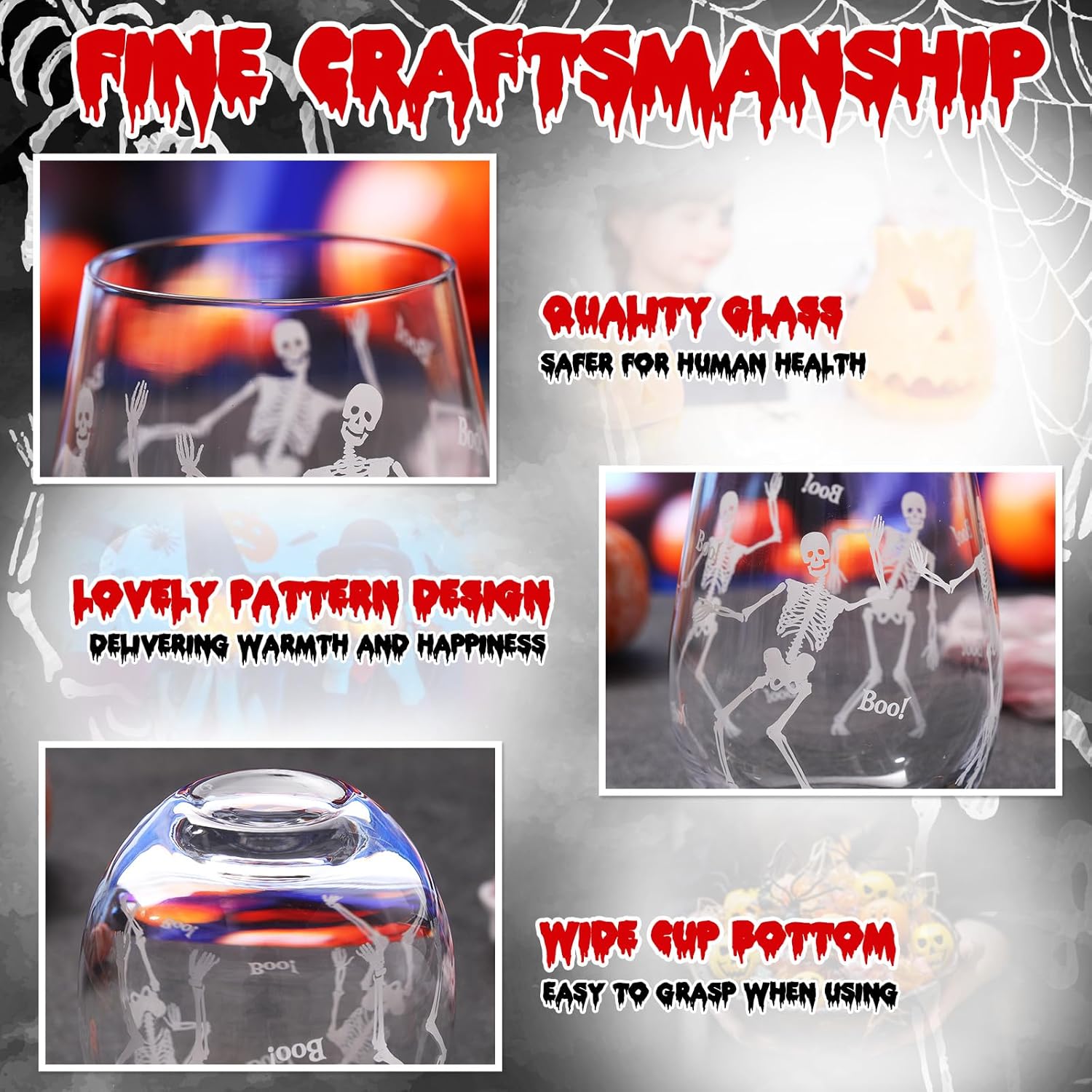 - Thoughtful Gift: this Halloween wine glass is a thoughtful gift for your loved ones; Its stylish design brings surprise, leaving a lasting impression on your loved ones; Whenever your loved ones use this wine glass, they will feel strong Halloween atmosphere