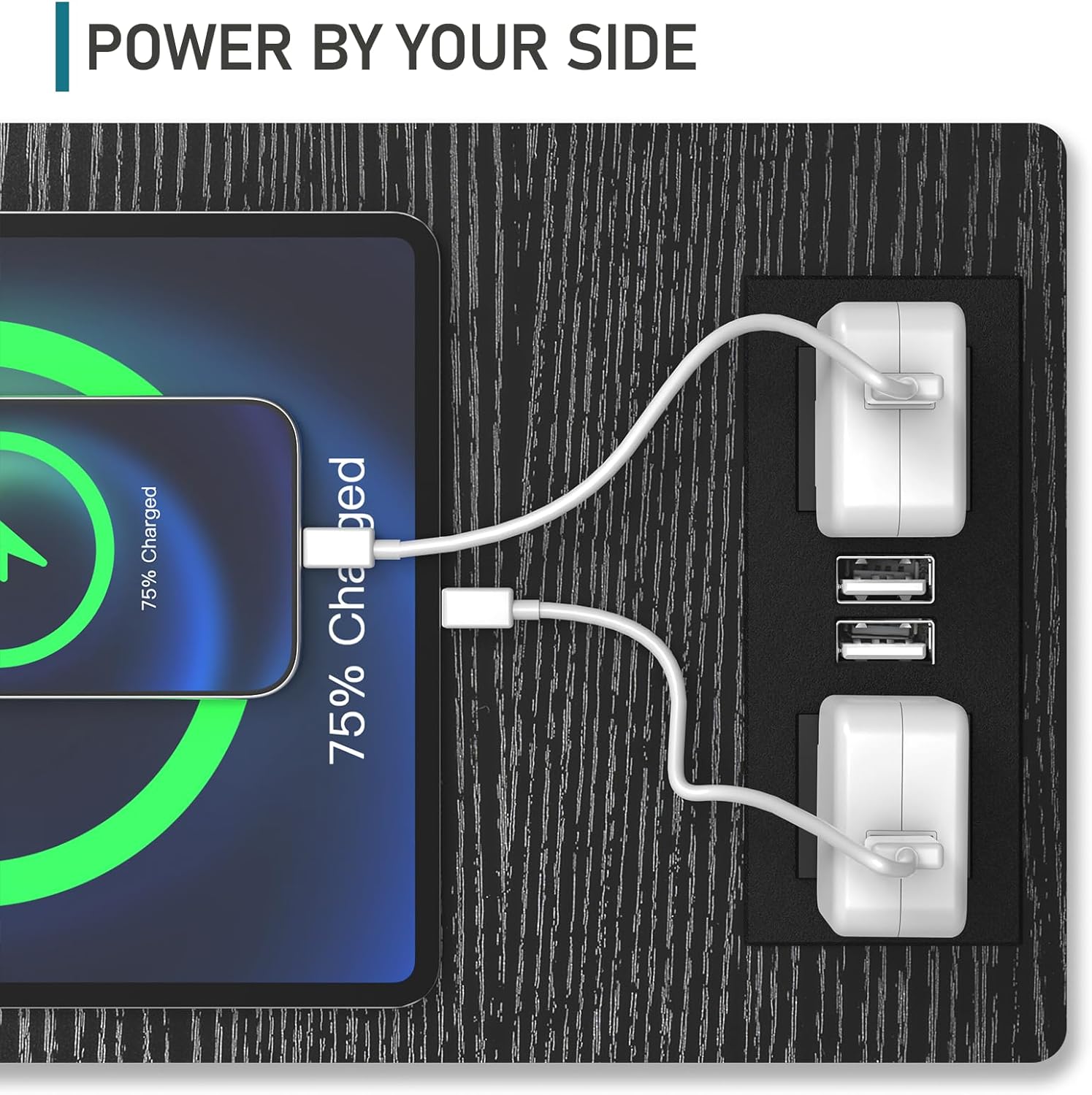 - [Integrated Charging Station]: This end table features an integrated charging station equipped with two standard power outlets and two USB ports. This setup enables you to charge up to four devices at the same time, ensuring your smartphones, tablets, smartwatches, and other electronics are always close at hand and powered up.