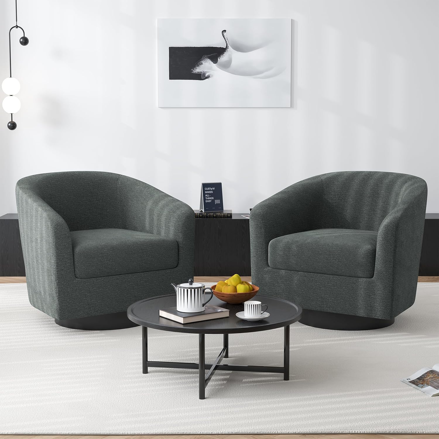 - 360 Degree Swivel Barrel Chair: This 360 degree round swivel chair designed for your leisure comfort. Heavy solid turntable, making it more stable and not wobbly