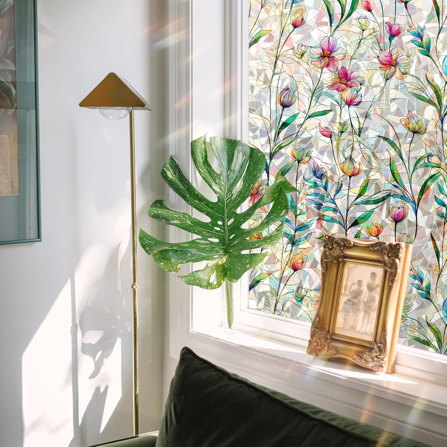 - 【Design】Floral rainbow window film with advanced 3D etching process. When the sunlight comes in, the special irregular patterns casts lots of rainbows create dreamy rainbow effect in your room. Rainbow film transform any regular window into a decorative work of art, it upgrades home decor and the aesthetics of your space