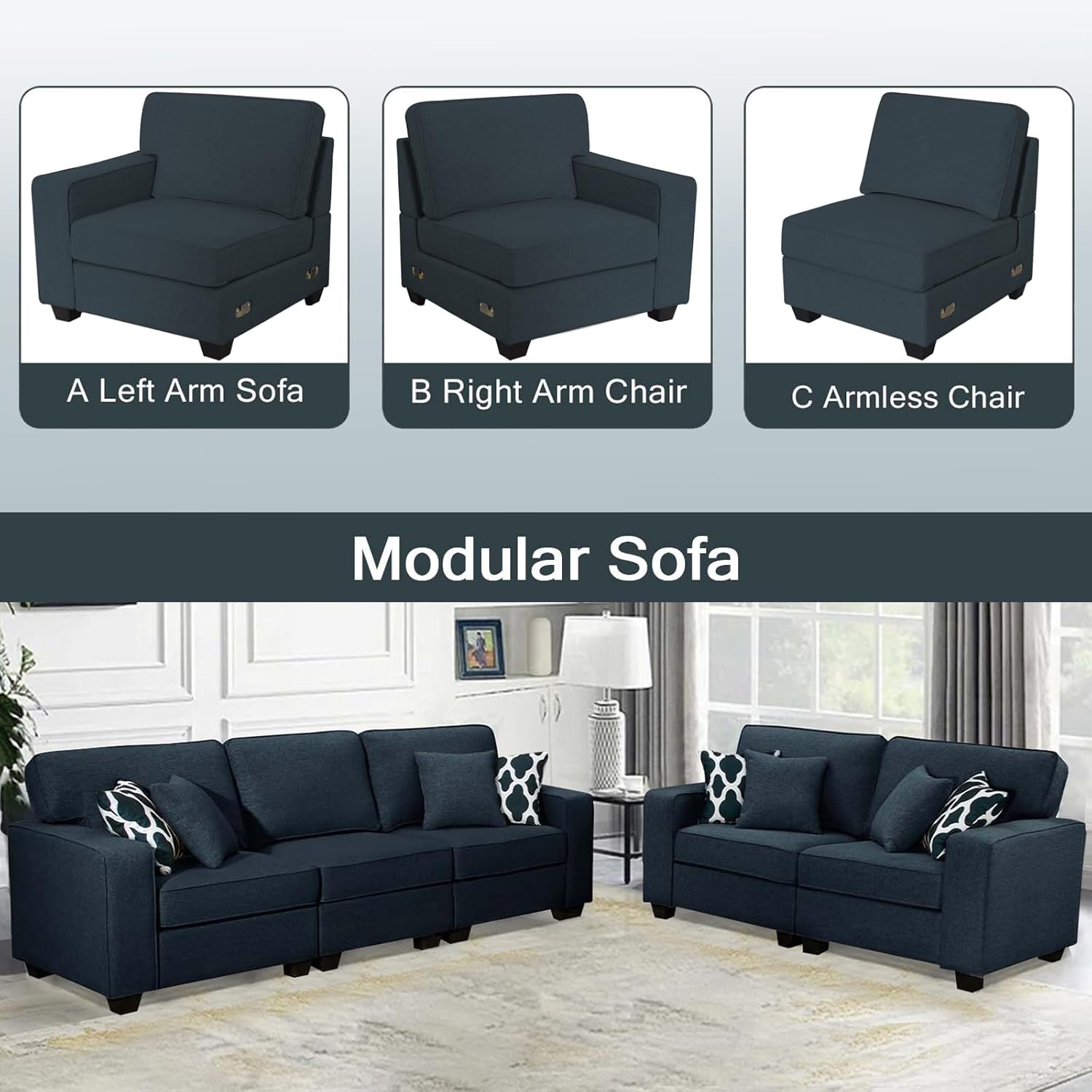 - ăHigh Quality FabricăThe modular sectional sofa is made of soft and comfortable polyester fabric, which highlights the exquisite texture of the sectional sofa and gives you a comfortable touch experience. The fabric of the sectional couch is not easy to wrinkle and durable, extending the use of the sectional couches. The beautifully modernized look of the modular couch is designed to fit perfectly into a variety of spaces such as the living room.
