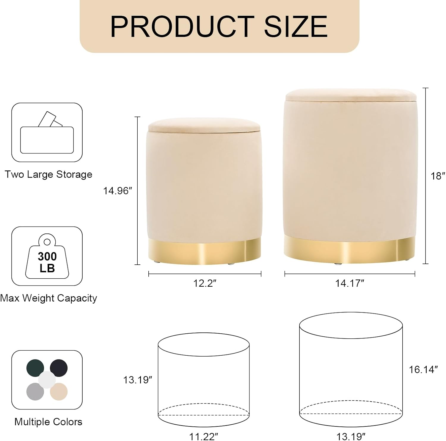- No Assembly:Our round storage foot stool requires no assembly. The footstool is very stable and can hold up to 300 pounds. The bottom is equipped with foot pads to protect the floor and prevent sliding.