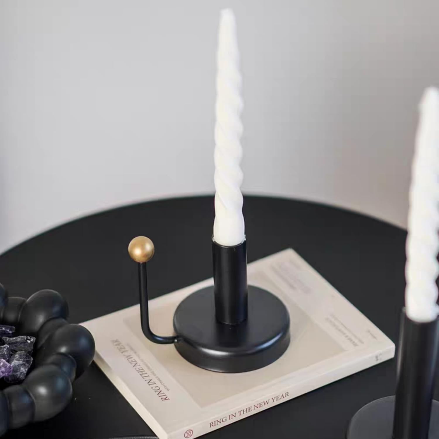 - 【Eye-Catching Contrast Design】Sleek matte black iron paired with chic golden sphere handles creates a striking visual contrast. This modern twist on classic taper holders blends playful Instagram-worthy charm with functional elegance for effortless style