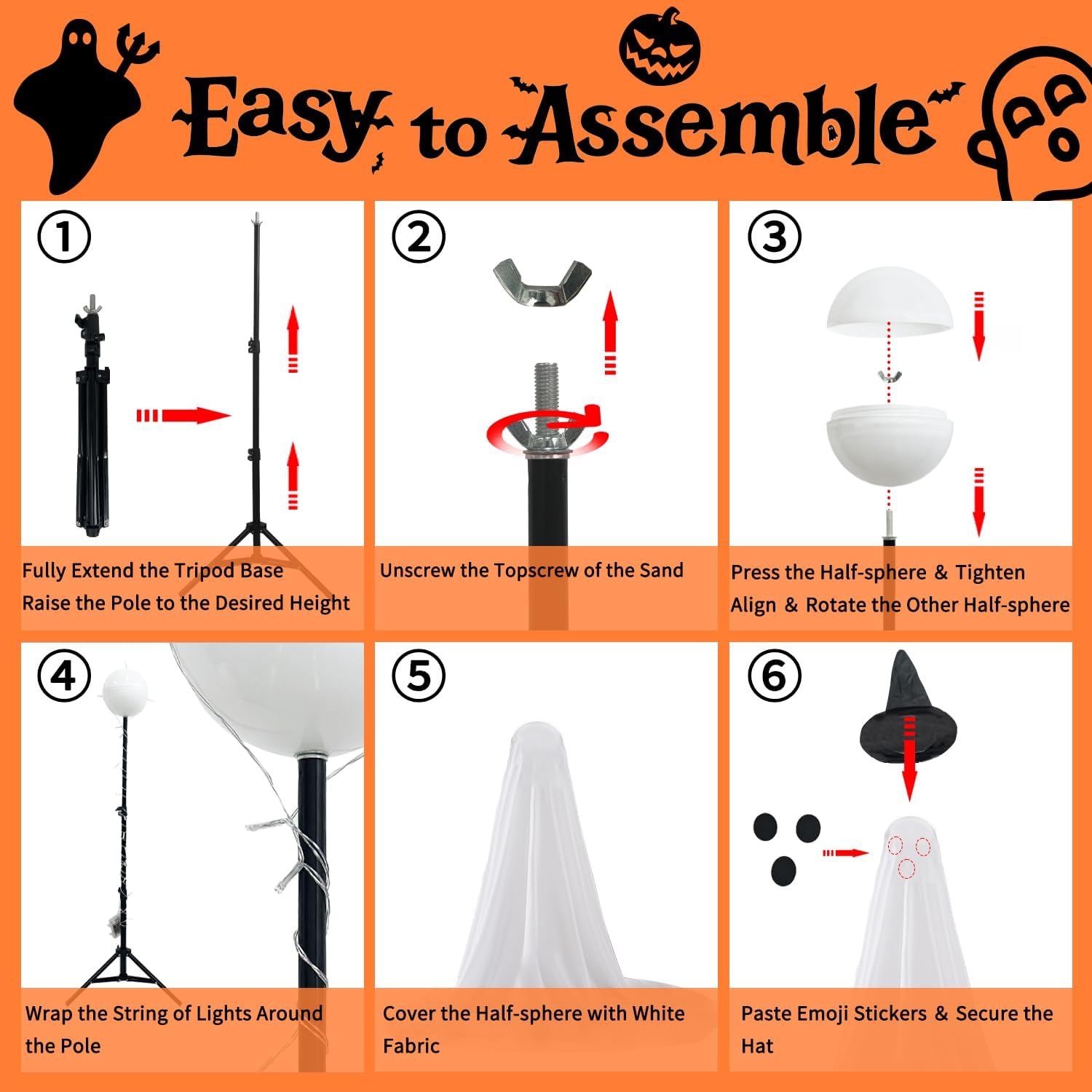 - ๐ป2025 Upgrade Materials: Adpot high quality sturdy materials, including a hemispherical head, base, and support rod, ensuring better stability. It is also easy to disassemble and store after use for next year's Halloween use.