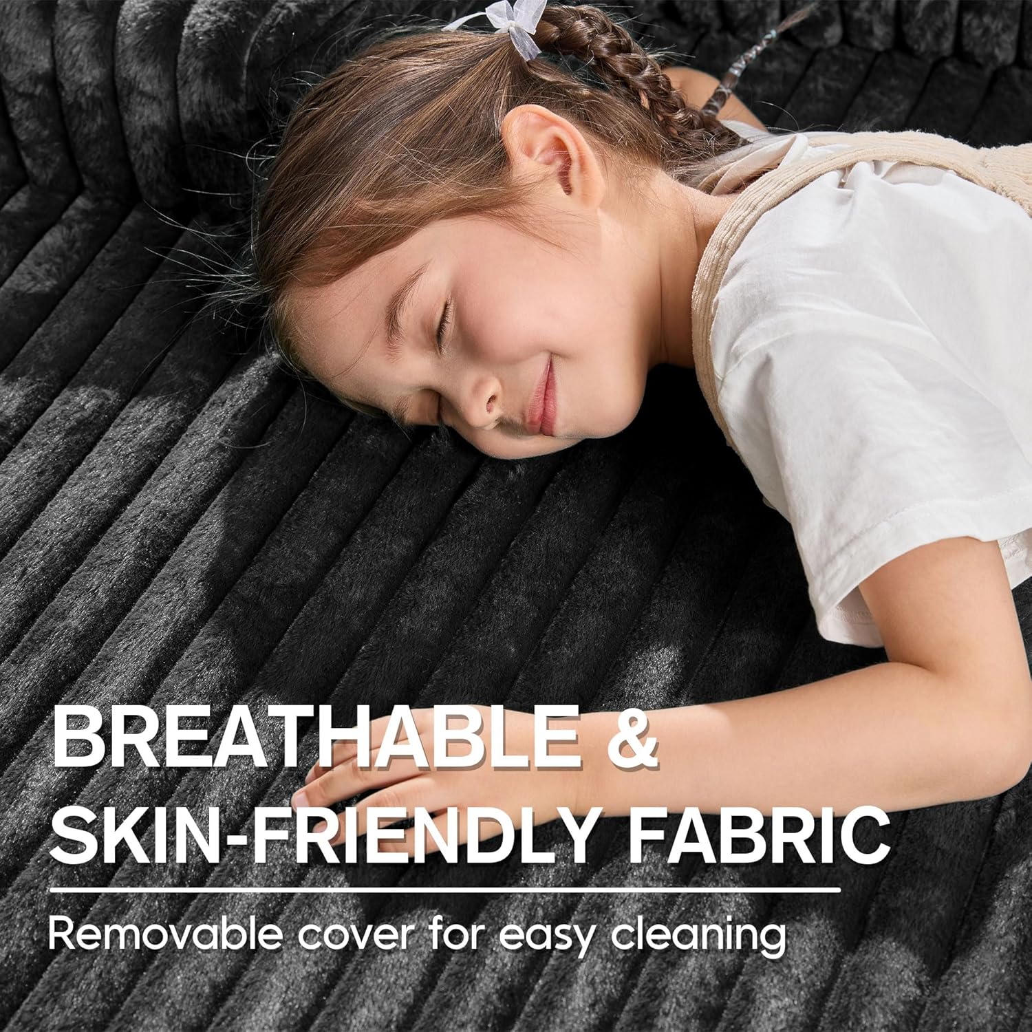 - Comfortable Sectional Couch: The boneless couch is made of breathable fabric and high-resilience memory foam with removable back cushion and neck pillow, providing you with a super comfortable experience. The anti slip design at the bottom ensures the stability of the sofa. The comfy cloud sofa cover is machine washable and can be cleaned when dirty.