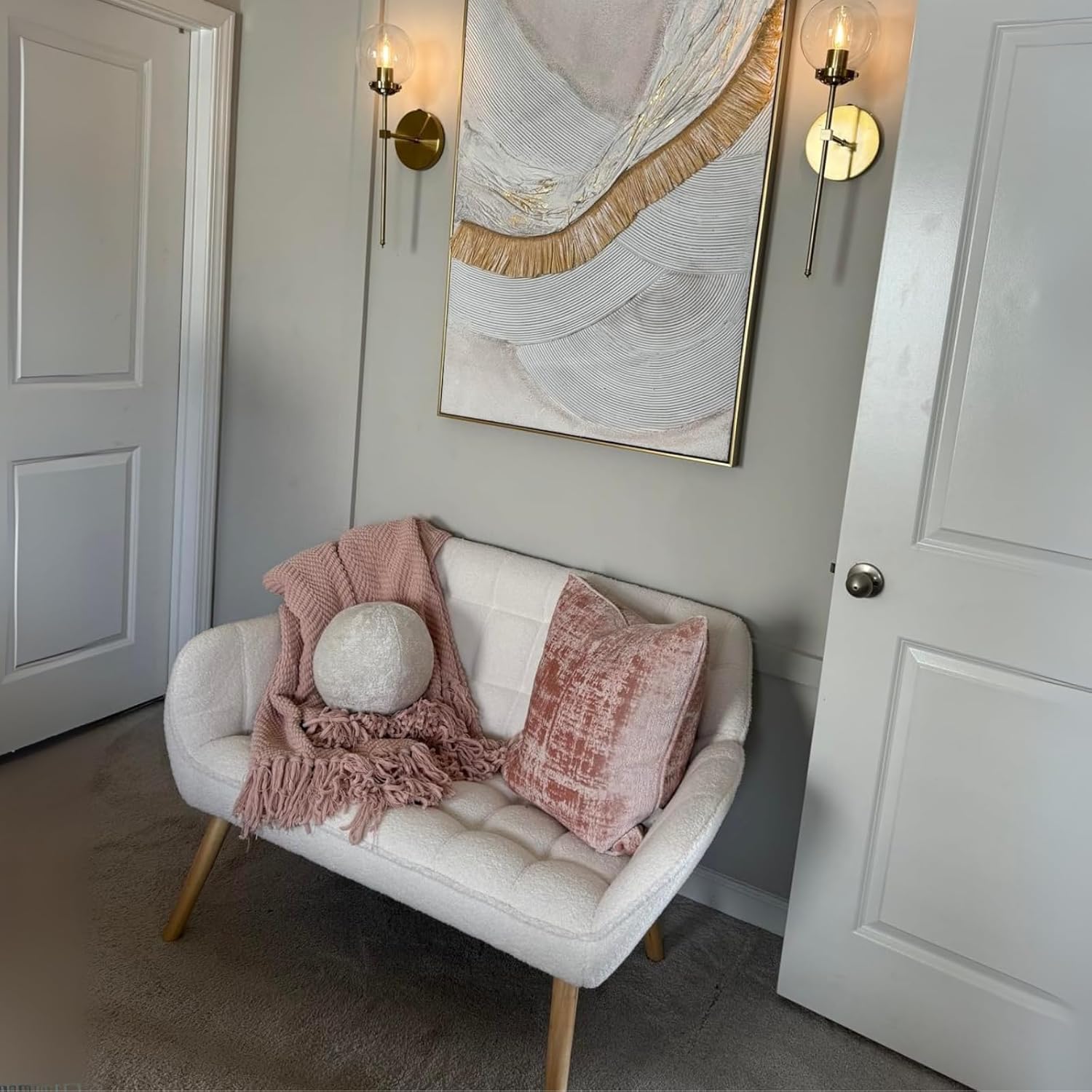 - Durable Textured Upholstery:Crafted with a reinforced high-density engineered wood frame and enveloped in plush faux fur upholstery in white neutral hues, this modern sofa delivers both durable structure and luxuriously textured comfort, seamlessly blending minimalist aesthetics with cozy warmth for contemporary living spaces.
