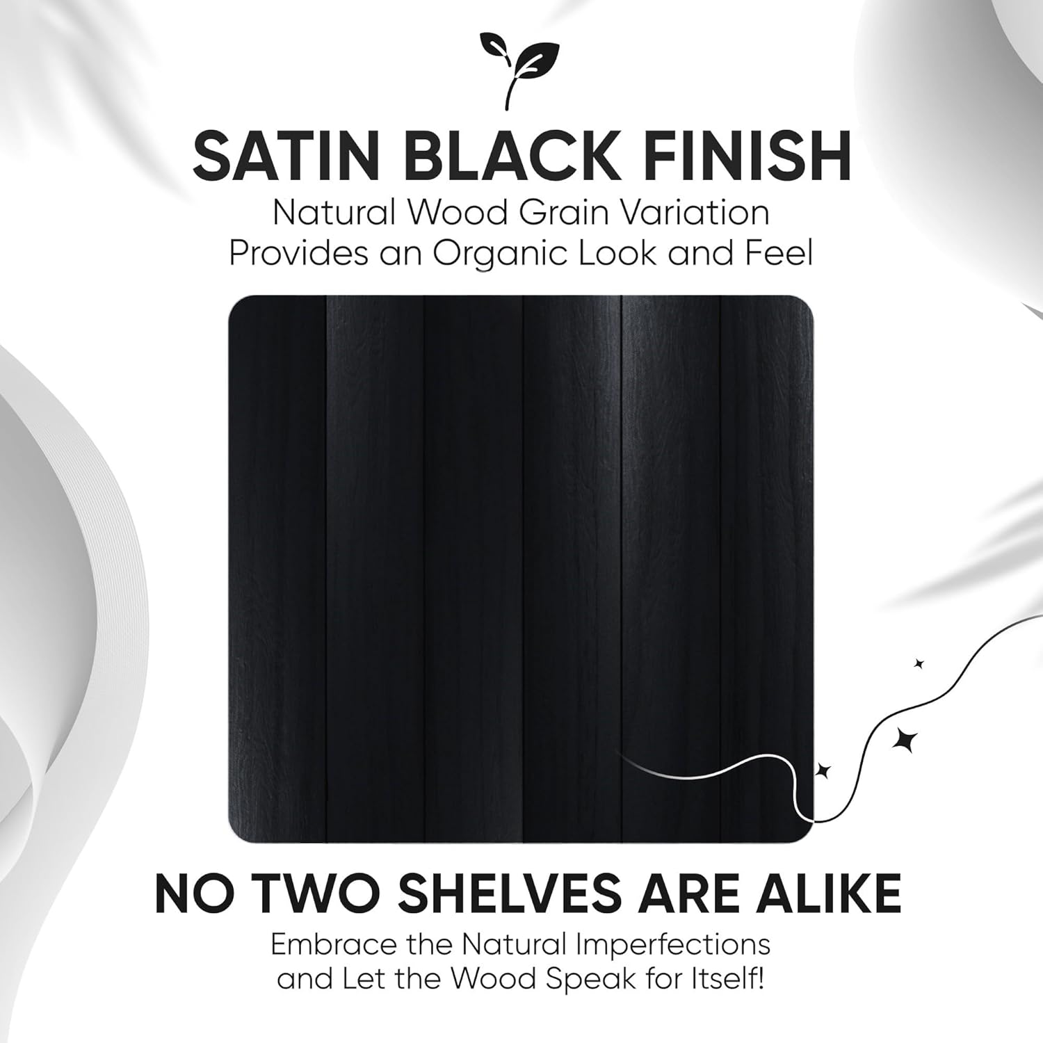 Homeforia Black Floating Shelf 18 inch, High End Solid Real Wood 18inch Bathroom Floating Shelves for Wall Mounted, Black Wooden 18in Floating Shelves, Heavy Duty Bracket, 18 X 6.5 X 1.75 in, Set of 4
