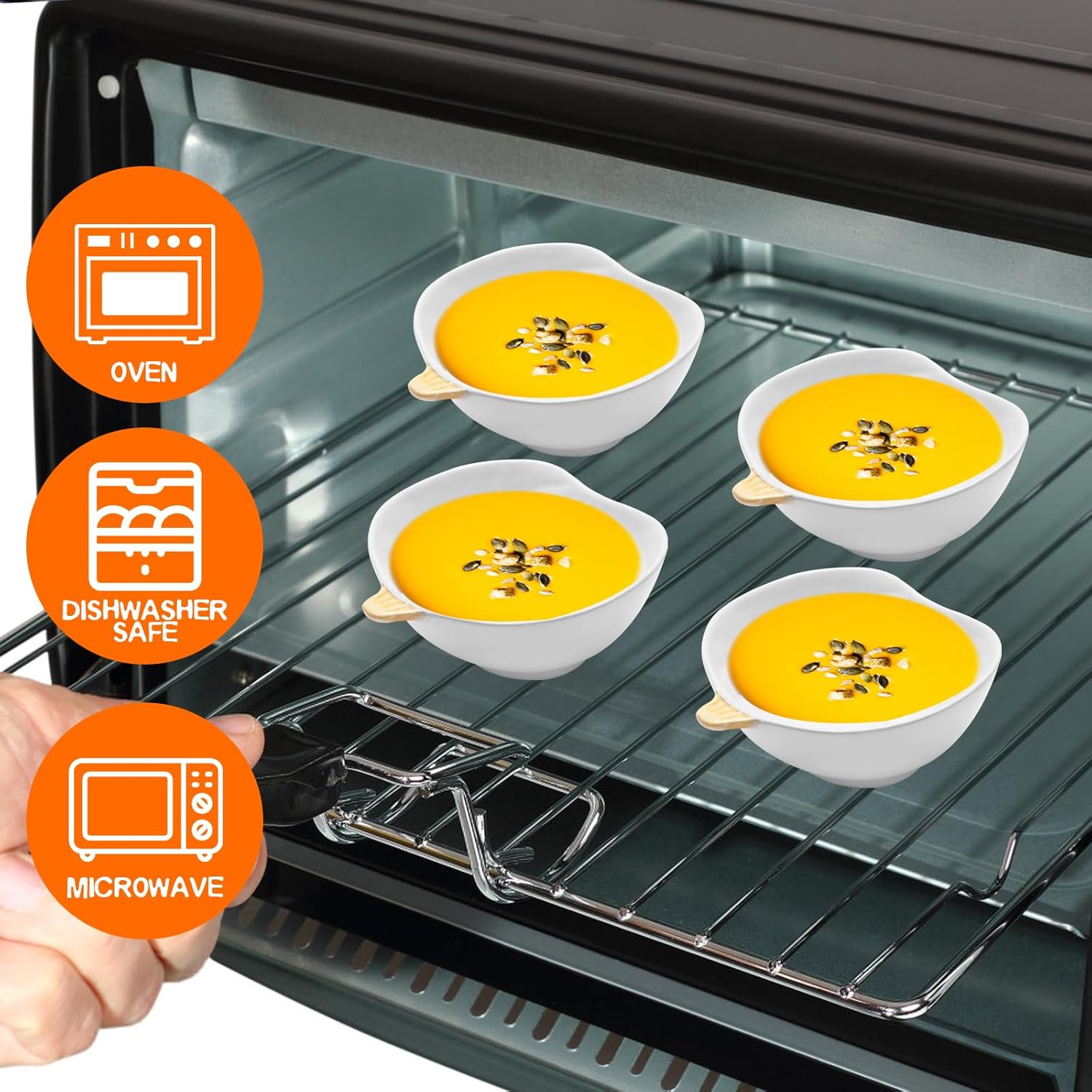 - Safety material:the pumpkin bowls are made of top grade ceramic at a high temperature. Unlike plastic or wooden bowls, porcelain won't absorb odor or bacteria. These mini bowls are lead-free & cadmium free, and harmless. You can pop these pumpkin sauce cups in the microwave and wash up nicely in the dishwasher. They stack neatly and less cabinet space taken. Oven safe (Up to 572°F/300°C)