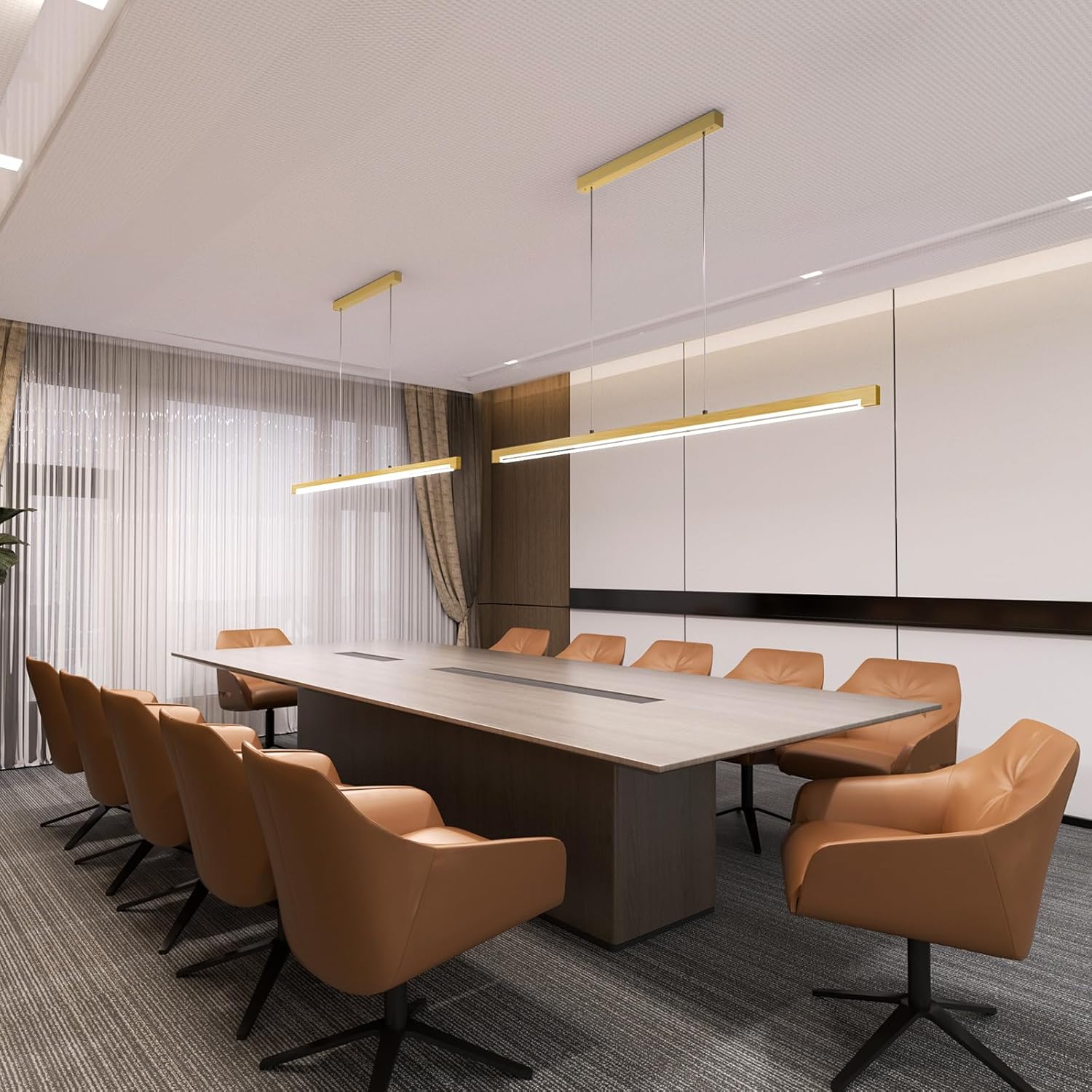 40W Gold Linear Pendant Light Aluminum, 54" Dimmable Kitchen Island Lighting with Remote & App Control, Adjustable CCT (3000K-6000K), Dining Room Chandelier for Home Office Study