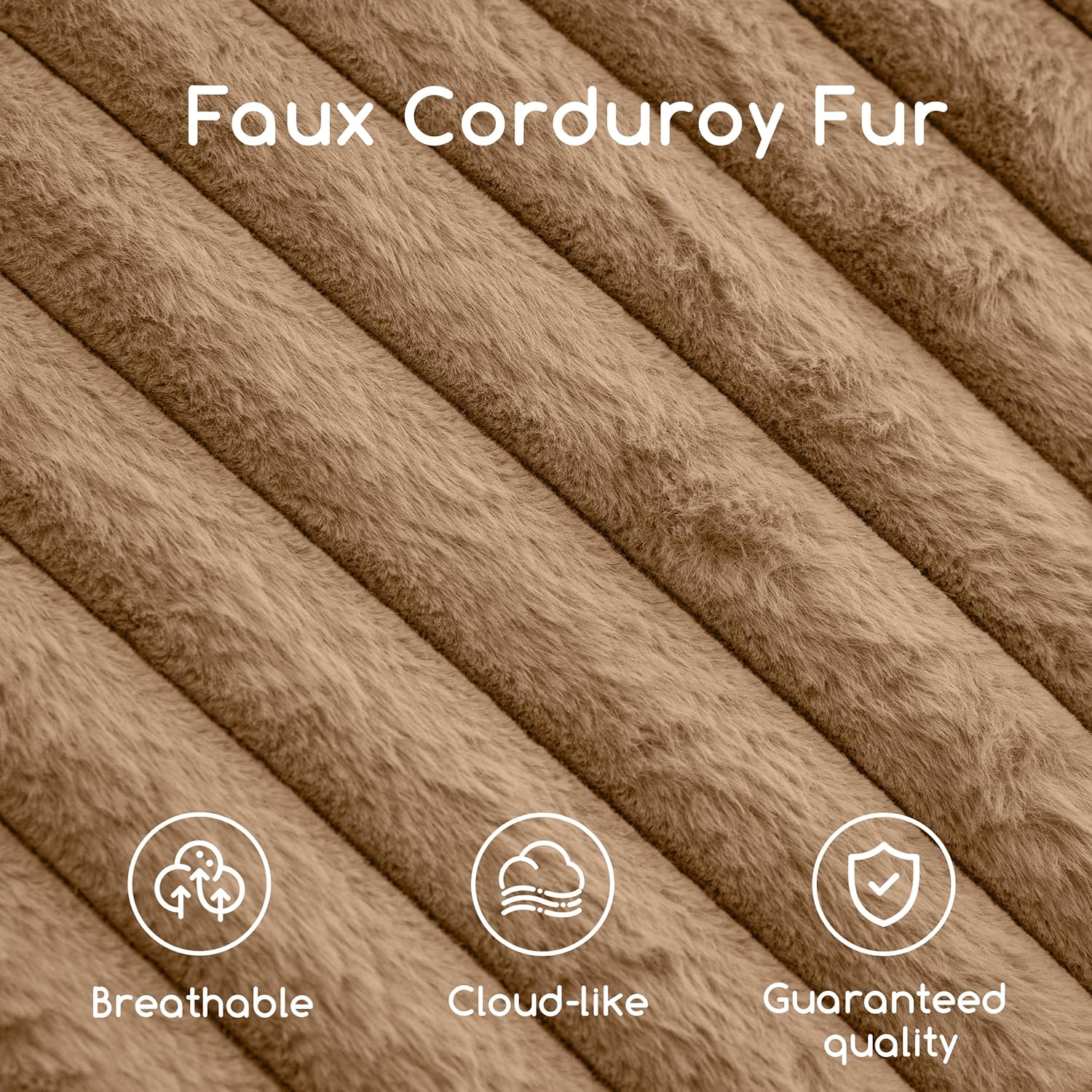 HIGOGOGO Round Stuffed Pouf Ottoman, Corduroy Poufs with High-Density Foam Filling, Furry and Fluffy Pouf Foot Stool Storage Ottoman, 20 X 15 Floor Poufs Foot Rest for Living Room, Brown