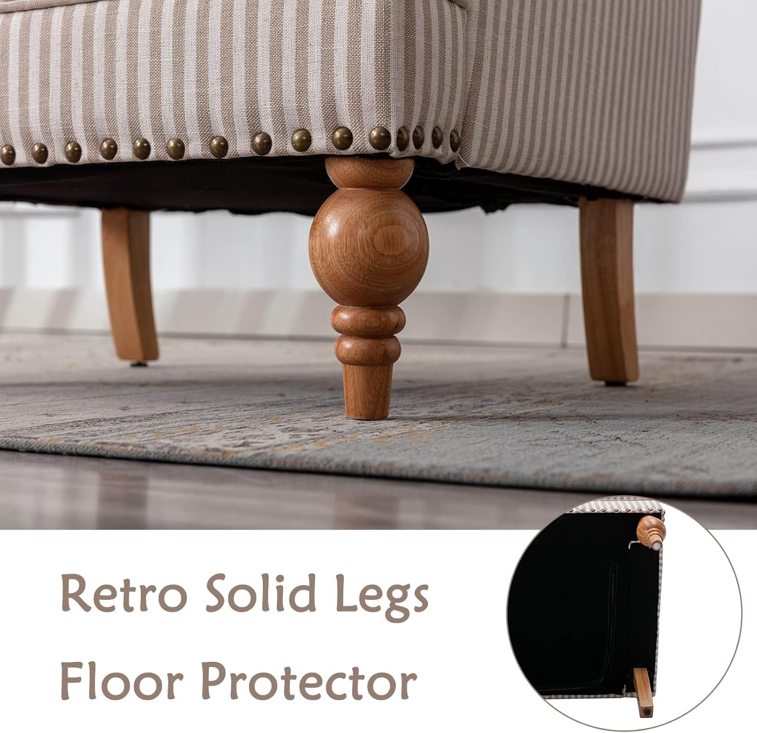 - CURVED ARMREST - The armrests are designed as round shap, which will be much comfier to relax your arms and shoulders on them. The bronze nailheads trim makes it more unique, it will be a siutable single sofa in your room