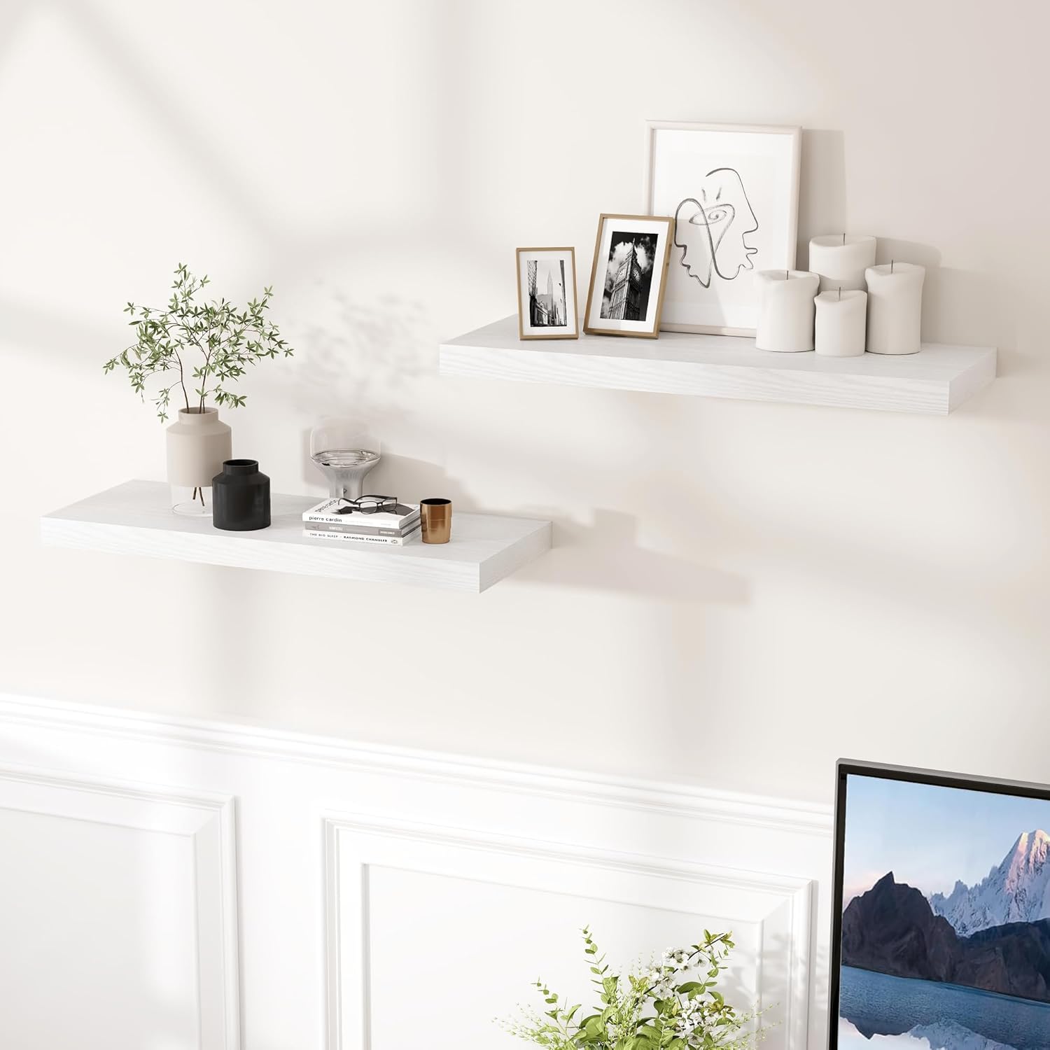 24 Inch Floating Shelves, Rustic 24 x 9 White Floating Shelf for Wall, White Bathroom Shelves Set of 2, Farmhouse Wood Wall Shelf for Bedroom, Kitchen, 9 Inch Deep Shelves for Home Storage