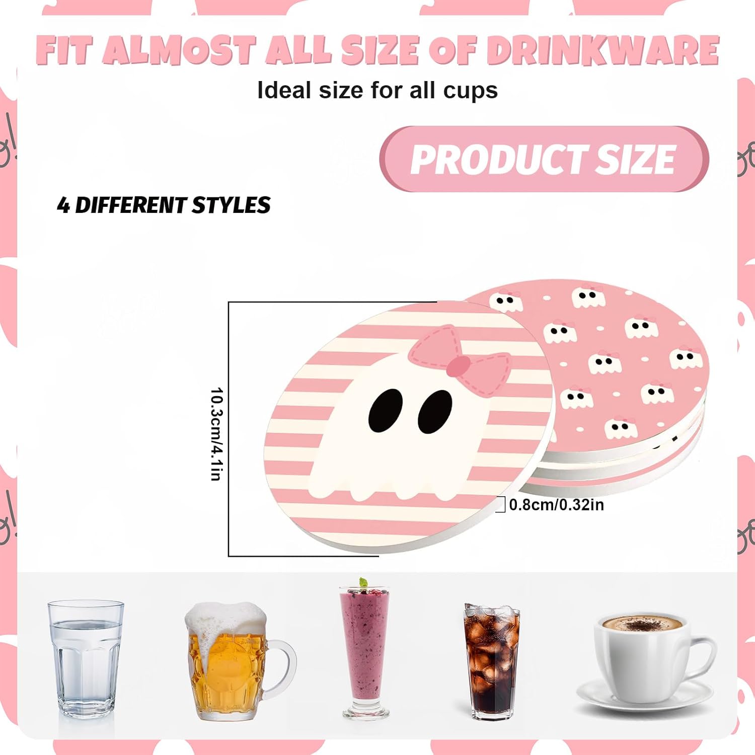 - Halloween Design: Our coasters are designed with Halloween pumpkin, spooky ghost and pink stripe patterns, etc., which will be the perfect complement to your holiday and everyday table decor