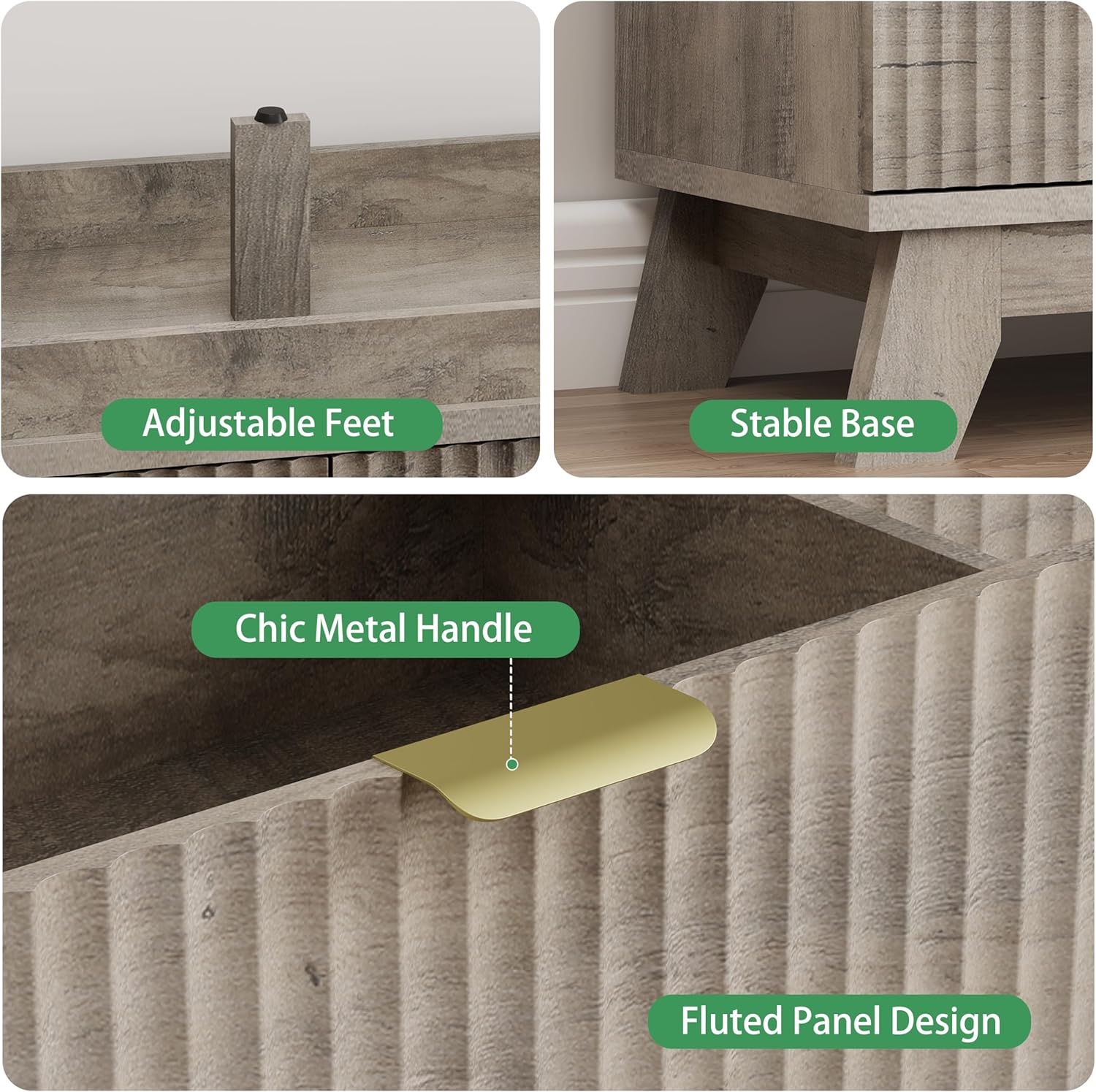- ăModern Chic AppearanceăThe unique wave-like fluted panel enhances the texture and elegance of this bedroom dresser. The thick table top features natural wood grain that complements the natural oak finish. The wide metal handle and splayed base legs add a modern touch, creating a personalized and distinctive appearance