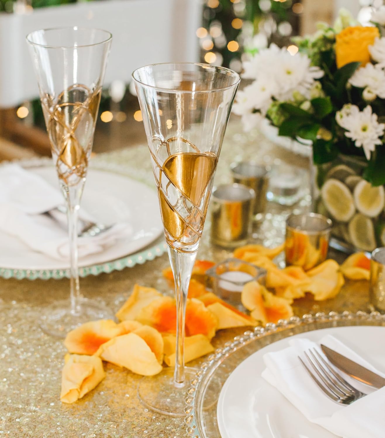 - SET OF 2 CHAMPAGNE FLUTES 🎁💛 A radiant pair of 7.5 oz mouth-blown crystal glasses ideal for sharing unforgettable celebrations with someone special.
