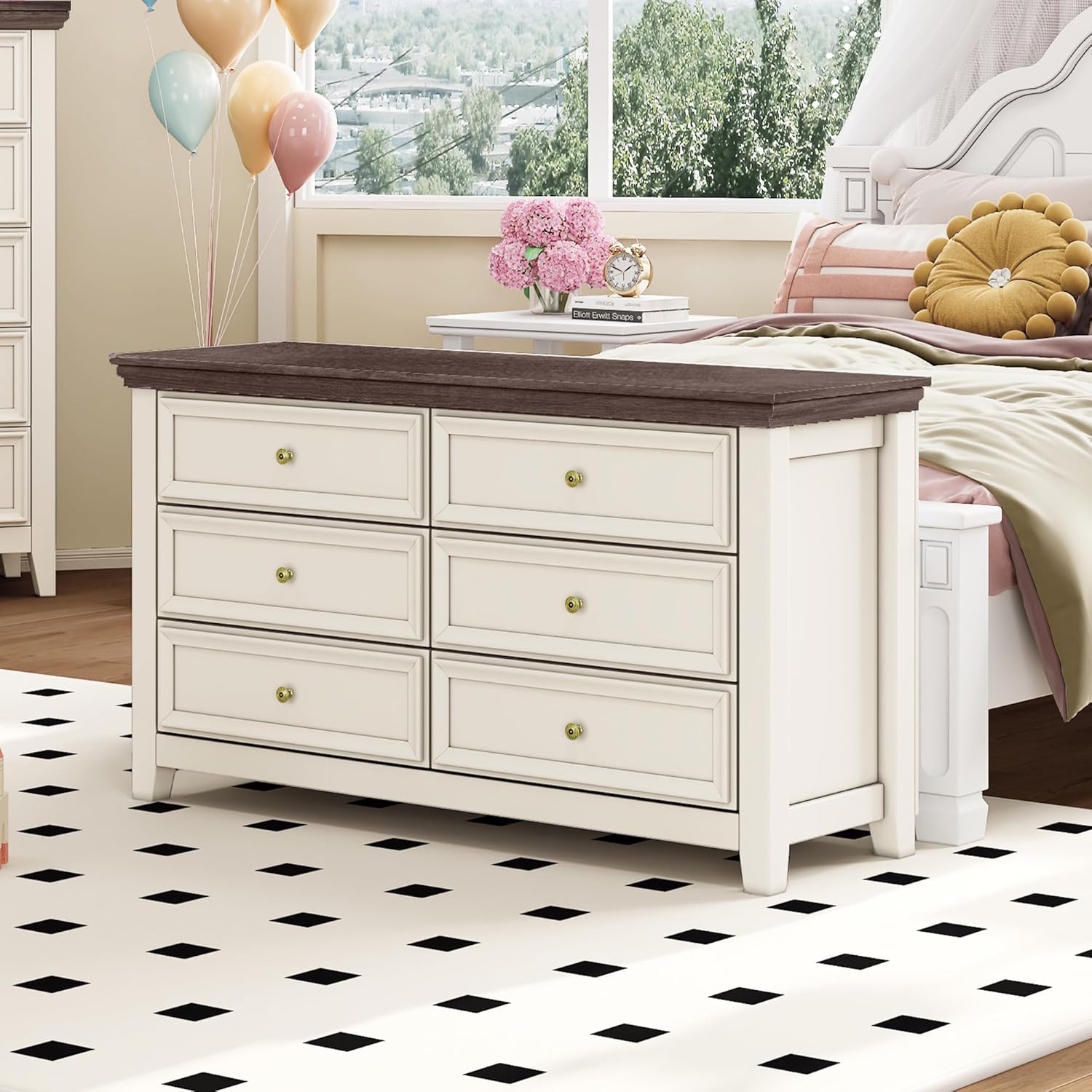 BLANKSPACE 6 Drawer Dresser, Modern Dresser for Bedroom, Wood Drawer Organizer with Metal Knobs, Large Capacity Cabinet for Bedroom, Antique White