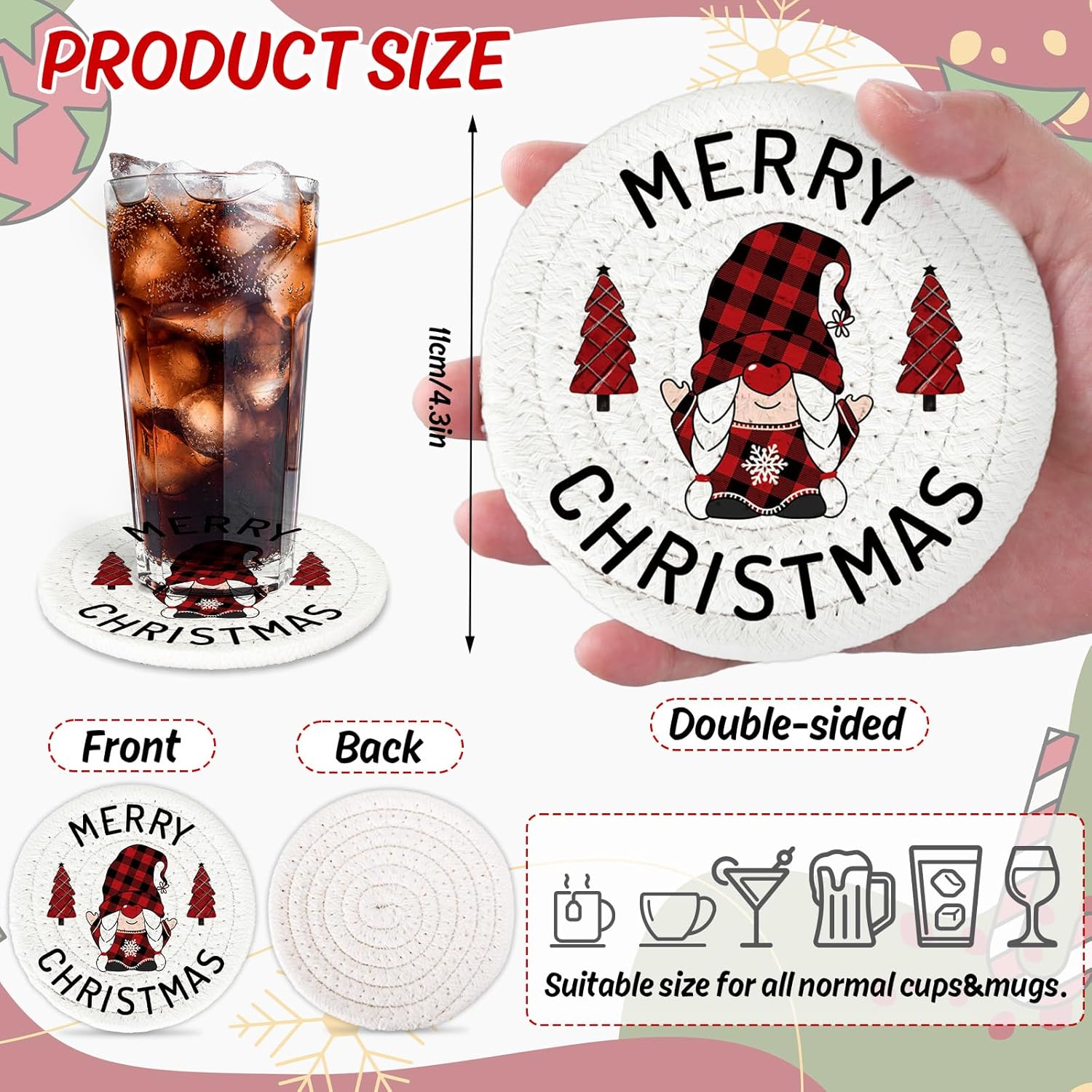 - The Package Includes: 4 Pcs Christmas theme cotton coasters in different designs, delicate design and enough quantity for you to use
