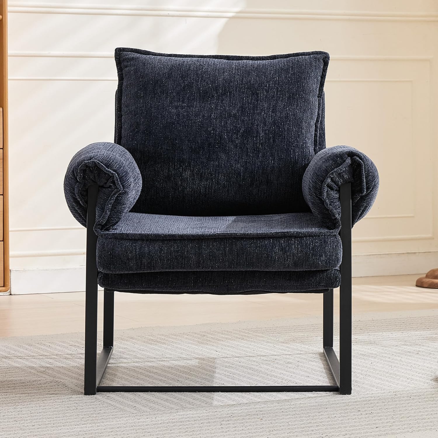 YISHENG Accent Chair with 6-Angle Adjustable Backrest, Chenille Fabric Living Room Chair Upholstered Lounge Chair, Modern Chair Cozy Reclining Chair for Reading Room, 1PC Dark Blue