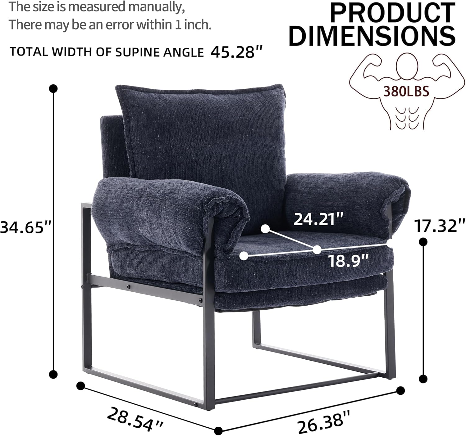 YISHENG Accent Chair with 6-Angle Adjustable Backrest, Chenille Fabric Living Room Chair Upholstered Lounge Chair, Modern Chair Cozy Reclining Chair for Reading Room, Set of 2 Dark Blue