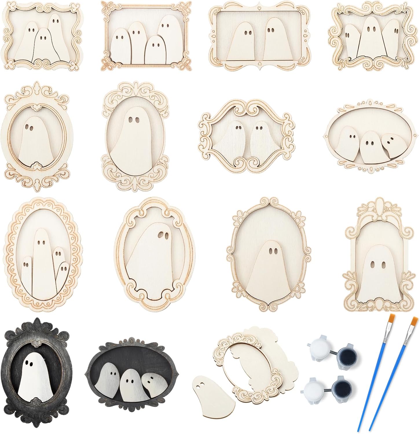 - Style and Quantity: this ghost photo frame set contains 12 sets of wooden ghost photo frames and comes with 6 sets of black and white paints and brushes; Each ghost photo frame has a unique shape and is sufficient in quantity, suitable for multiple people to participate in DIY creation and enjoy the fun of Halloween together