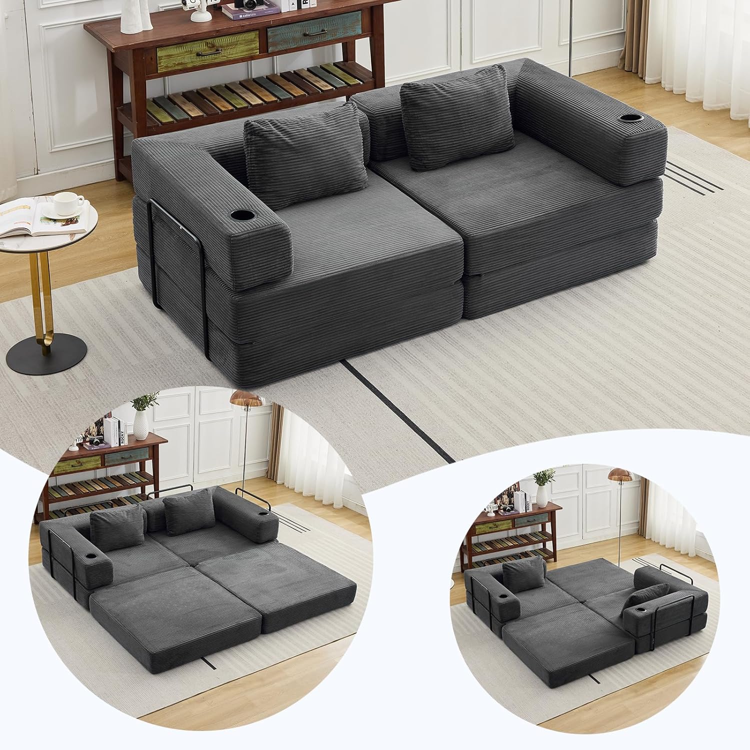 - 【No Assembly Required】Skip the hassle of installation. Our foldable modular compressed sofa arrives vacuum-packed. Upon unpacking, allow the sofa bed to breathe for 48 hours to regain its original shape and size