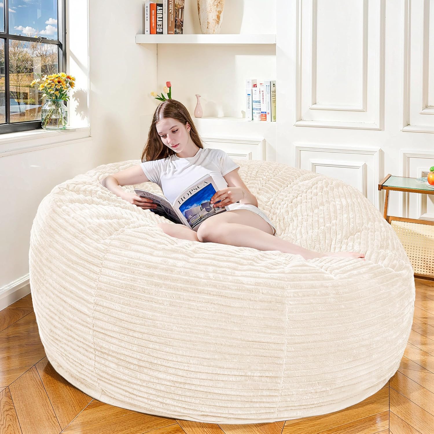 Large Bean Bag Chair, 6FT Giant Beanbag Chairs with Memory Foam Filled, Bean Bag Chairs for Adults, Ultra Soft Lazy Sofa for Living Room Bedroom (White)